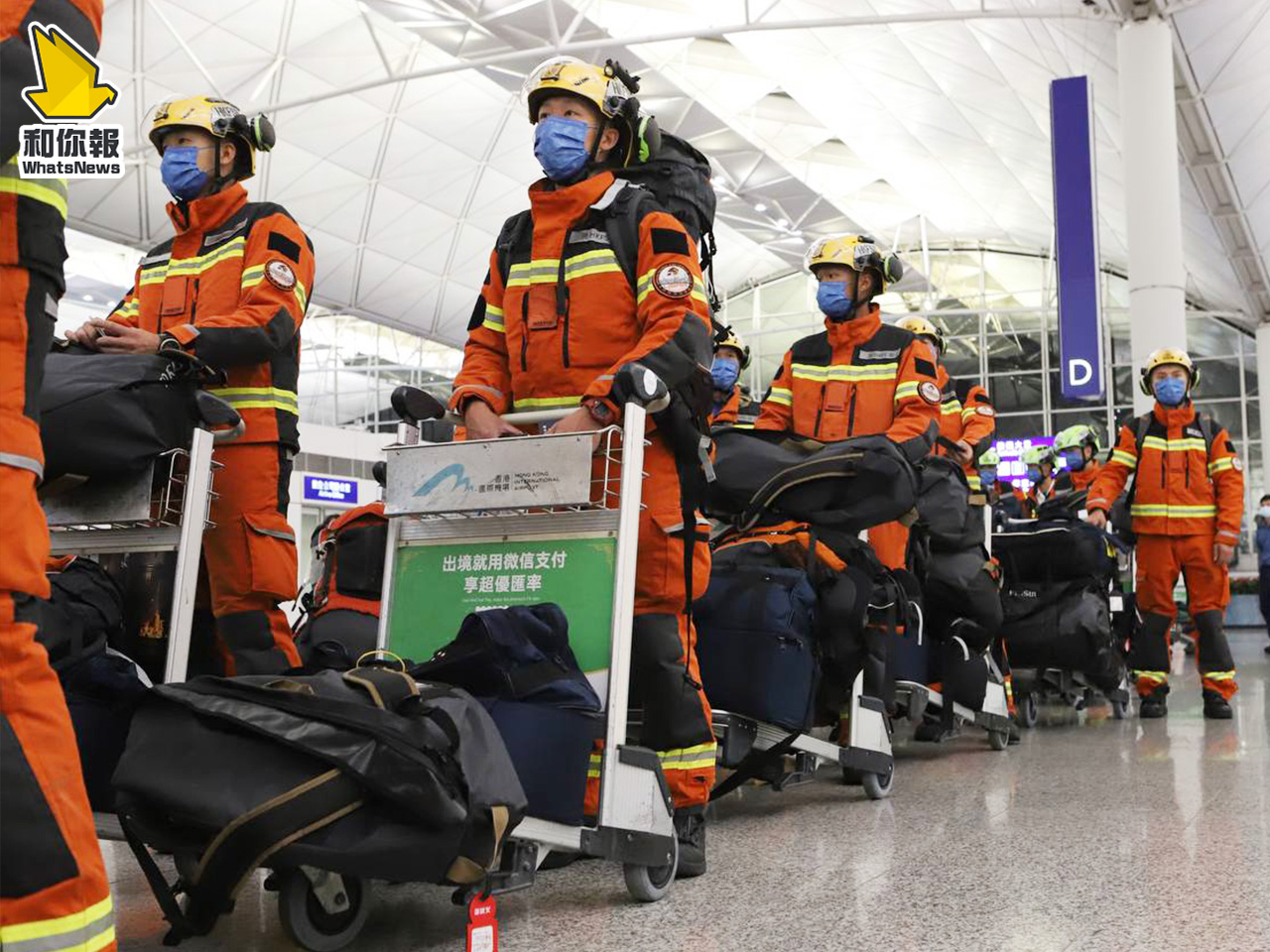 前日(6日)土耳其南部兩次大地震,連同鄰國敘利亞死亡人數逾9600人,港府今晚(8日)宣佈派出由保安局、消防處、入境處和衞生署人員組成的搜救隊前往土耳其當地協助救援。署理行政長官陳國基、保安局局長鄧炳強、消防處處長楊恩健、消防處副處長(行動)黃鎮業到場送行。搜救隊由副消防總長于文陽帶隊,全隊59人,當中包括消防處坍塌搜救專隊49名人員,當中包括消防、救護與工程組人員,以及保安局、入境事務處及衞生署人員。是次出動是消防處自2008年四川地震後,再次派出專隊到海外參與救援行動。