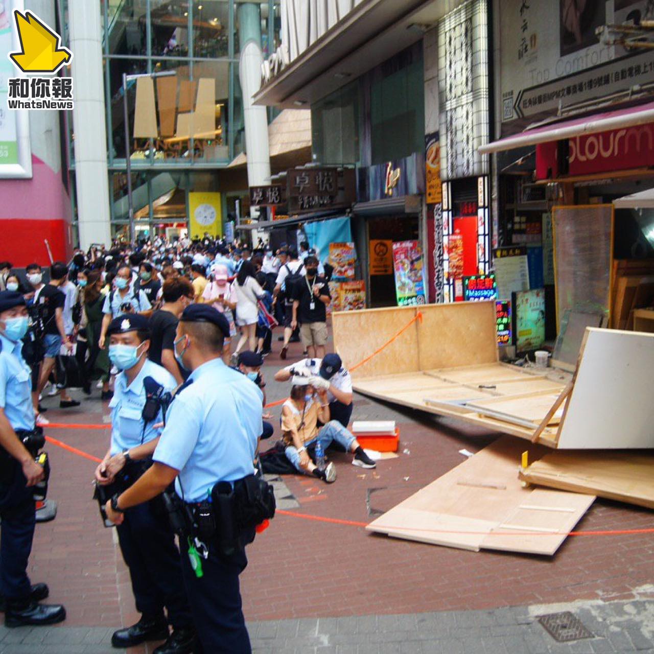 旺角商舖裝修圍板倒塌 擊中一名女士清醒送院